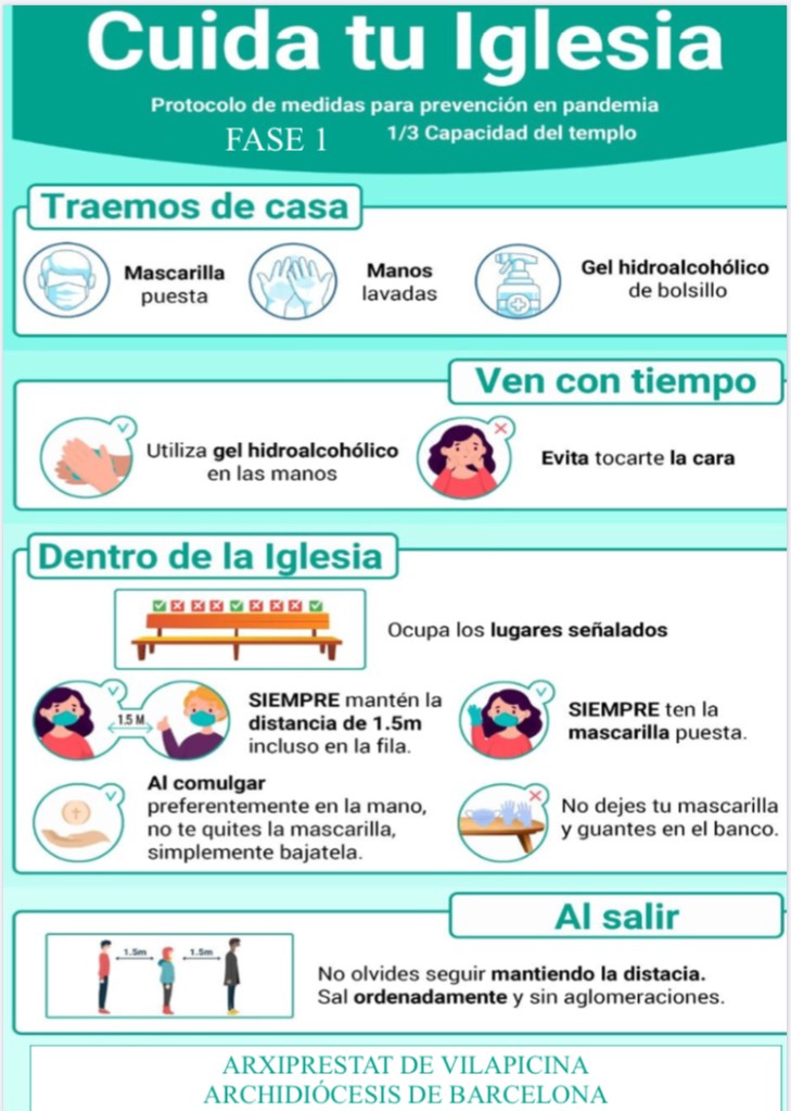 A continuación podrán ver el modelo de cartel editado en el Arciprestazgo-Obispado, para que puedan seguir las recomendaciones que en él se dan.