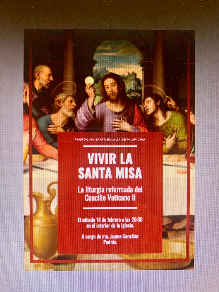 El sábado 18 de febrero a las 20.30 h., después de la Misa de vigilia, nos visitará Mn. Jaume González Padrós, para ofrecernos una charla que lleva por título: Vivir la Santa Misa: La Liturgia reformada del Concilio Vaticano II.