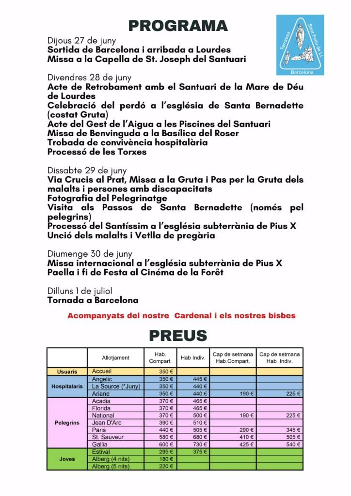 En el cartell que a continuació els adjuntem, podran trobar la informació tant del programa previst en el pelegrinatge, com dels preus de l’estada.